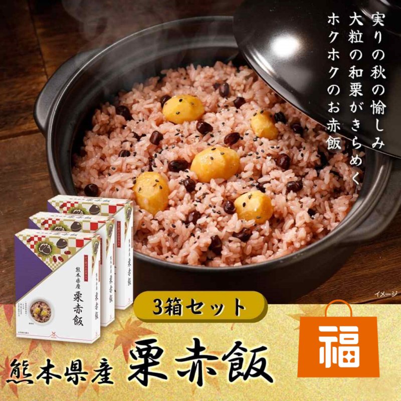 熊本県産 栗赤飯 3箱組 出雲のおもてなし 熊本県産栗赤飯 ごま塩付き アルファ米 お茶碗3膳分 炊飯器で約25分 簡単 米寿 内祝い お祝い お食い初め プチギフト 結婚式 記念日 贈答品 ギフト プレゼント アルファー食品